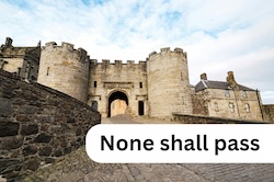 Symbolic image of a castle with caption ‘None shall pass’
